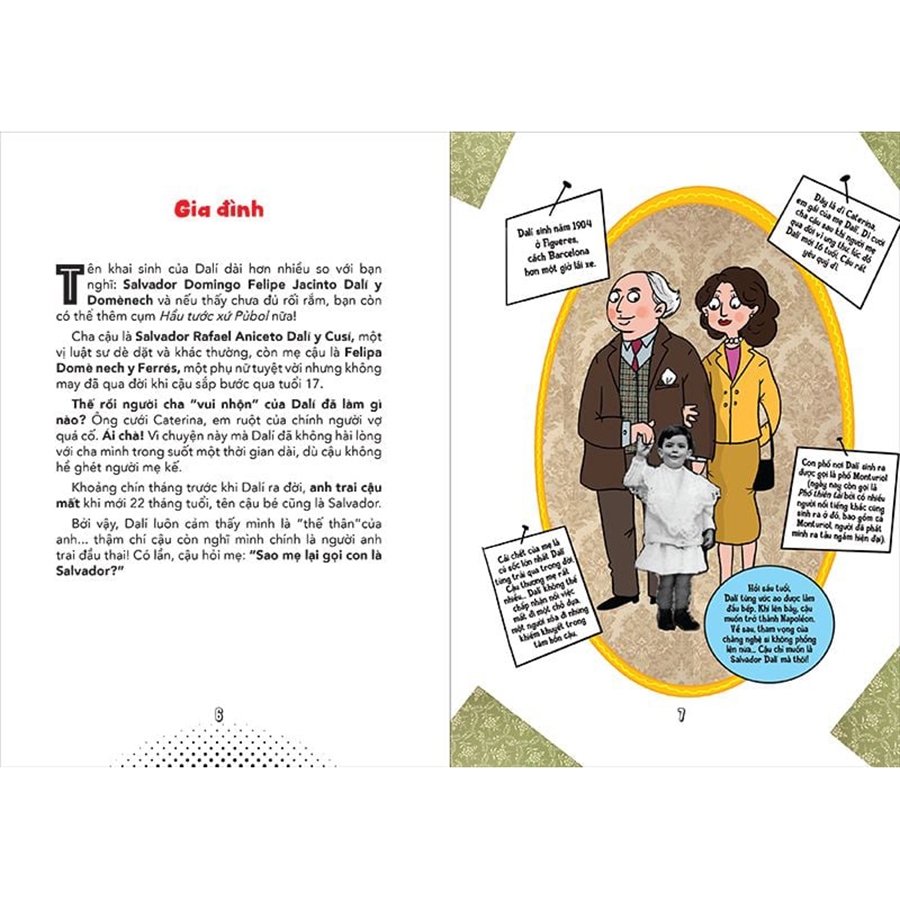 Bộ sách mang tới cho những người yêu nghệ thuật các câu chuyện bên lề li kì ít người biết về những nghệ sĩ tài năng bậc nhất thế giới: Van Gogh, Picasso, Dalí, Kahlo, Haring, Warhol. Mỗi một hoạ sĩ lại mang một cá tính khác nhau với màu sắc cuộc đời khác nhau, nhưng điểm chung của họ là đều cống hiến trọn vẹn cuộc đời cho hội hoạ. Mỗi tập sách được tặng kèm một bộ sticker độc đáo.