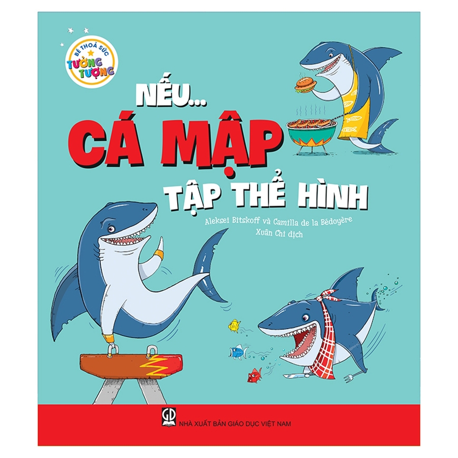 - Cuốn Nếu... cá mập tập thể hình: Hãy tưởng tượng, một ngày nào đó, anh chàng cá mập trắng đến ở nhà bé, chắc chắn, bé sẽ vô cùng bất ngờ khi phát hiện ra cá mập trắng có thể: ăn tới 5.000 chiếc xúc xích mỗi lần và nhịn ăn liền hai, ba tháng, nhảy cao hơn bất cứ vận động viên nào, phát hiện ra mùi nước tiểu nếu chỉ có một thìa nước tiểu đổ xuống bể bơi… Và còn bao nhiêu điều kinh ngạc khác về loài cá mập đang chờ bé khám phá!