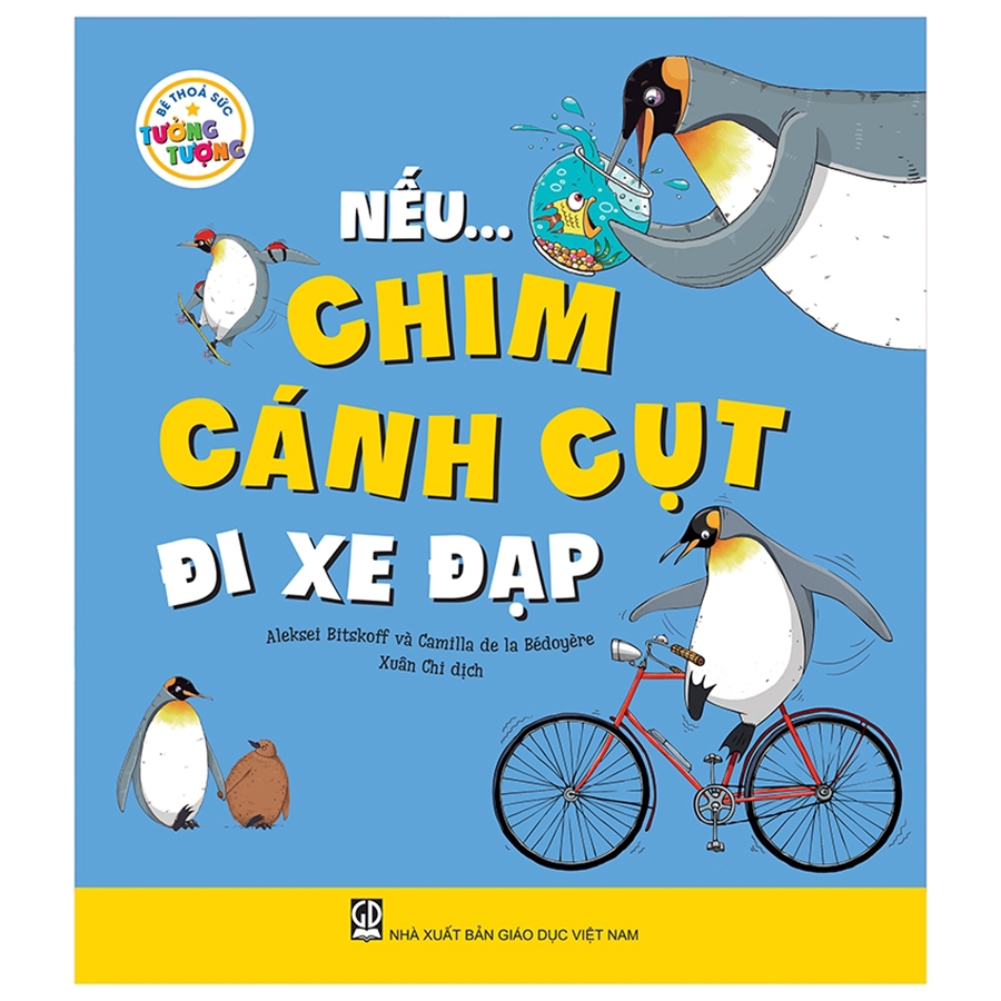 - Cuốn Nếu... chim cánh cụt đi xe đạp: Hãy tưởng tượng, một ngày nào đó, cậu bạn chim cánh cụt vua đến ở nhà bé, chắc chắn, bé sẽ vô cùng bất ngờ khi phát hiện ra chim cánh cụt vua: là tay bơi siêu hạng, không biết đi xe đạp nhưng chơi ván trượt rất điêu luyện, có thể nôn ra hàng tá cá trong bụng mình để chia cho mọi người làm thức ăn… Và còn bao nhiêu điều kinh ngạc khác về loài chim cánh cụt đang chờ bé khám phá!.