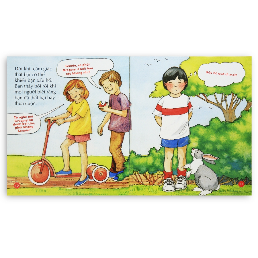 Cuốn Không ngại thất bại thuộc Bộ sách kĩ năng giúp trẻ tư duy tích cực kể về cậu bé Lennie thường cảm thấy chán nản mỗi khi cố gắng làm việc gì đó nhưng đều thất bại hay thấy cực kỳ xấu hổ mỗi khi thua cuộc trong các cuộc thi. Không phải các bạn nhỏ đâu, mà kể cả người lớn như bố mẹ này cũng có lúc không thể làm được việc gì đó. Lennie hiểu ra nên không cảm thấy chán nản, xấu hổ mỗi khi thất bại hay thua cuộc nữa. Bạn ấy cũng biết chia sẻ cảm xúc thất bại với người khác, biết động viên ai đó khi họ thất bại.