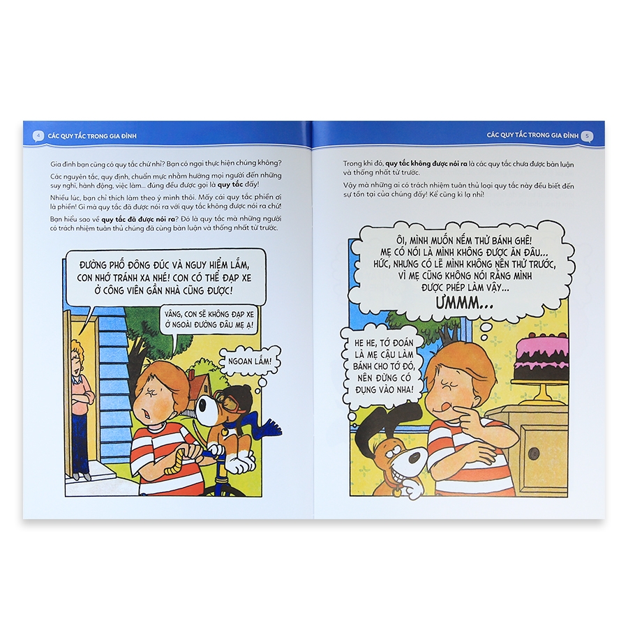 Cuốn “Hiểu về quy tắc và trách nhiệm trong gia đình”: Giúp trẻ hiểu rõ hơn về gia đình, các loại quy tắc và trách nhiệm trong gia đình, từ đó có ý thức thực hiện tốt những quy tắc và trách nhiệm này trong khả năng của trẻ. Đây cũng là cách mà mọi bạn nhỏ đều có thể làm để góp phần xây dựng tổ ấm gia đình mình ngày càng yên vui, hạnh phúc.