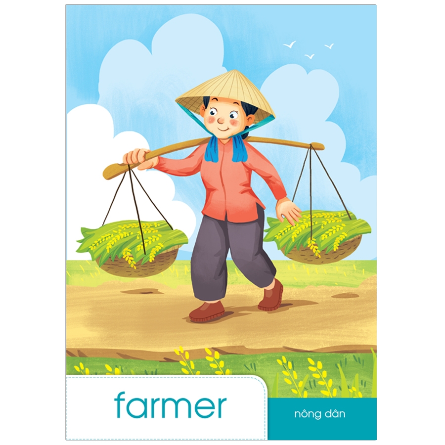 Bộ tranh lựa chọn 12 từ tiếng Anh theo chủ đề Một số nghề phổ biến. Các từ ngắn gọn, dễ đọc, dễ nhớ như: teacher, doctor, police, worker, farmer, singer, driver,… Mỗi tranh là một hình ảnh vui nhộn, sống động và tên gọi bằng tiếng Anh, tiếng Việt.