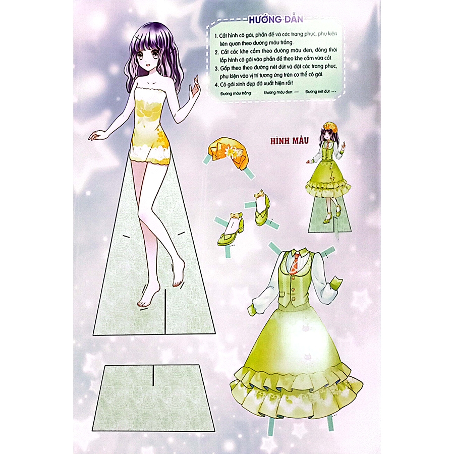 3. gấp theo theo đường nét đứt và đặt các trang phục, phụ kiện vào vị trí tương ứng trên cơ thể cô gái