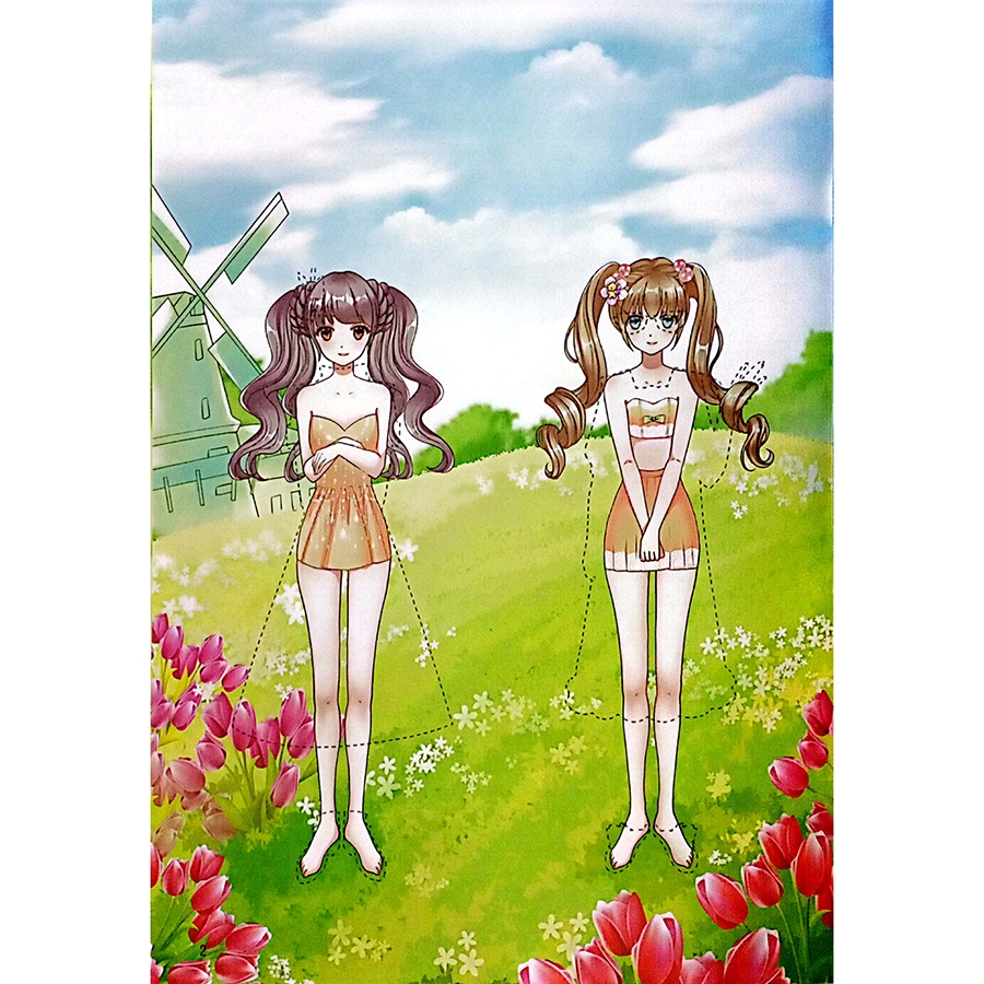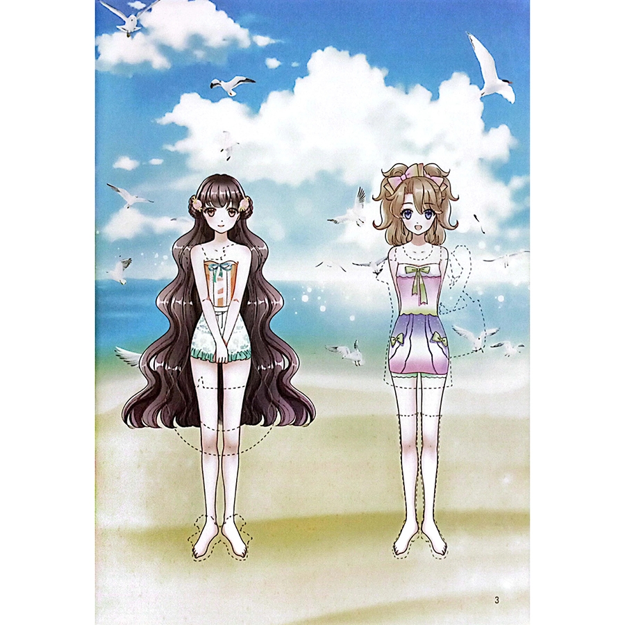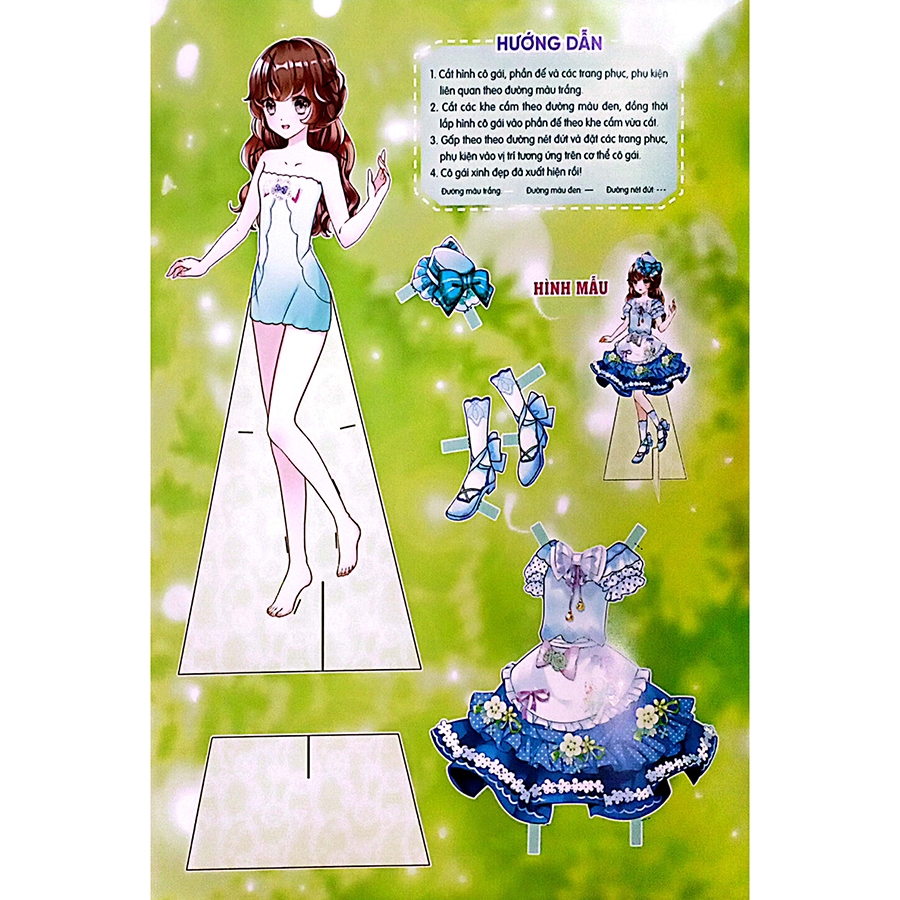 3. gấp theo theo đường nét đứt và đặt các trang phục, phụ kiện vào vị trí tương ứng trên cơ thể cô gái