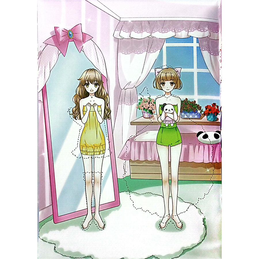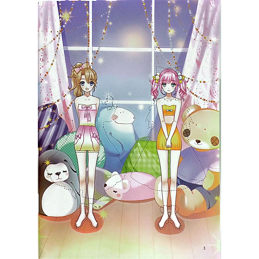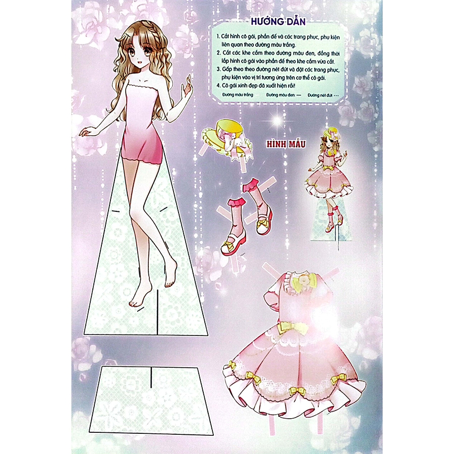 3. gấp theo theo đường nét đứt và đặt các trang phục, phụ kiện vào vị trí tương ứng trên cơ thể cô gái