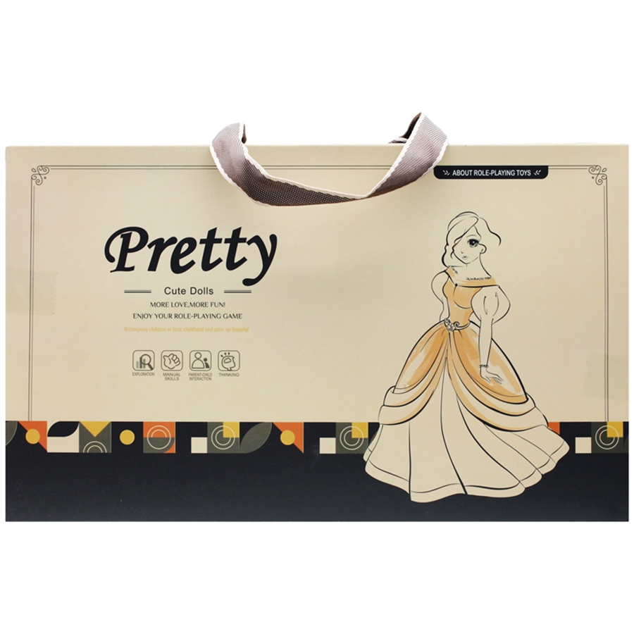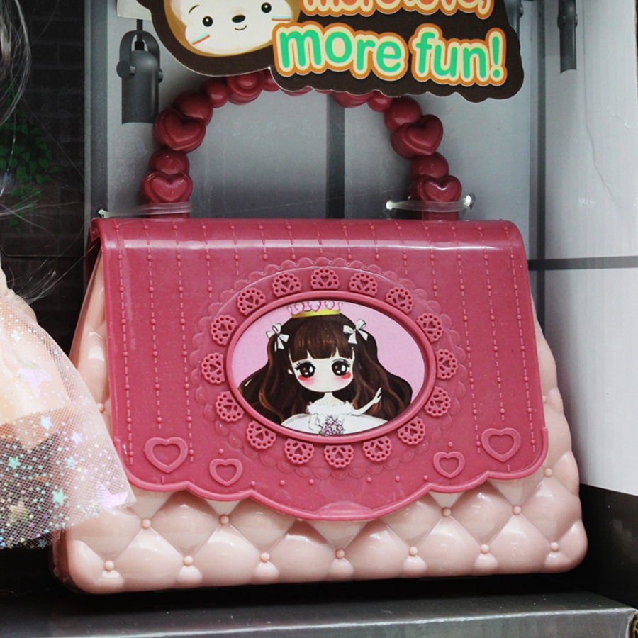 Kèm theo trên người của bé búp bê là chiếc đầm công chúa, chiếc vòng cổ ngọc ngà và kèm theo chiếc túi xách sang trọng và đẹp mắt cùng với những món đồ bên trong set công chúa này.