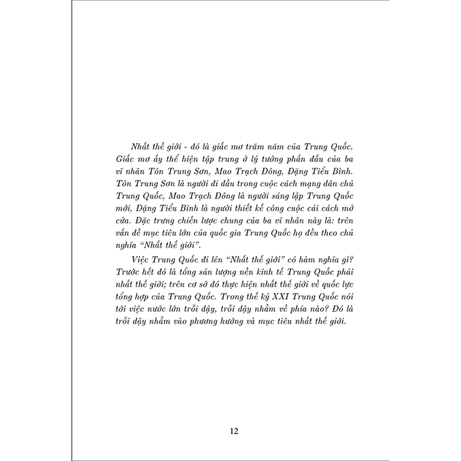Tác giả khai thác một đề tài “nóng” của thế giới cuối thế kỉ 20 đầu thế kỉ 21, trên cả phương diện lý thuyết và thực tiễn đó là cuộc tranh luận về kết quả của một cuộc cạnh tranh cấp độ toàn cầu giữa các cường quốc chủ yếu. Sự trỗi dậy của Trung Quốc trên bình diện kinh tế, quân sự, vị thế quốc tế đã làm thay đổi cục diện chiến lược quốc tế cũng như cán cân sức mạnh tổng quát, buộc các quốc gia phải cân nhắc, tính toán để xây dựng chính sách ứng phó thích hợp. Điều quan trọng hơn hết, cuốn sách được viết ra bởi một trí thức thuộc quân đội Trung Quốc đã có thời gian tương đối dài nghiên cứu chiến lược phát triển của quốc gia mà ông đại diện để lên tiếng. Tức là, một tiếng nói, một quan điểm từ nội bộ Trung Quốc về chính mục tiêu trong tương lai của họ. Đó là đặc điểm cần thiết của cuốn sách giữa bối cảnh đã có quá nhiều phân tích, luận giải từ phương Tây, từ Việt Nam về Trung Quốc. Điểm nhìn hay diễn ngôn từ nội bộ Trung Quốc sẽ góp phần đa dạng hóa tri thức của chúng ta về quốc gia láng giềng có vị trí đặc biệt trong tiến trình lịch sử Việt Nam.