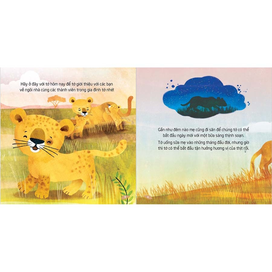 Cuốn sách Sư tử là lời kể chuyện của bạn sư tử nhỏ đang sống cùng bố mẹ, anh chị em ruột cùng nhiều cô bác và anh chị em họ thành một bầy sư tử. Một ngày của gia đình sư tử trên thảo nguyên châu Phi mênh mông luôn có nhiều điều thú vị, các bé hãy mở sách ra và trải nghiệm một ngày cùng tớ nhé!