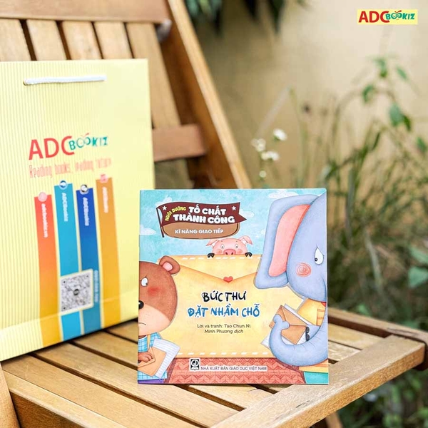 Cuốn Kĩ năng giao tiếp – Bức thư đặt nhầm chỗ rèn luyện kĩ năng giao tiếp cho trẻ. Nhân vật chính trong truyện là lợn con muốn giúp hai bạn gấu con và voi con nói chuyện trở lại để giải quyết mâu thuẫn, làm hoà với nhau. Dù sử dụng sai cách và đặt nhầm vị trí của hai bức thư nhưng việc lợn con chủ động đứng ra phá vỡ khoảng cách, giúp hai bạn không còn giận nhau là rất đáng khen ngợi.