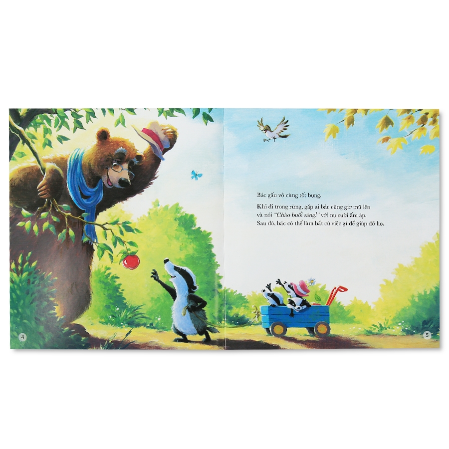 Cuốn sách Bác gấu ốm rồi! kể về bác gấu tốt bụng, luôn luôn giúp đỡ mọi cư dân trong rừng. Tuy nhiên, các con vật coi sự giúp đỡ đó là điều hiển nhiên nên còn chẳng nhớ cảm ơn bác gấu mỗi khi chúng được bác giúp. Cho đến một ngày bác gấu ốm, chúng mới thấy bác gấu thật quan trọng biết bao và chúng cũng học được cách quan tâm, chăm sóc tới bác gấu. Câu chuyện giúp trẻ học biết nói lời cảm ơn khi được giúp đỡ, biết cách quan tâm, chăm sóc tới những người xung quanh mình.