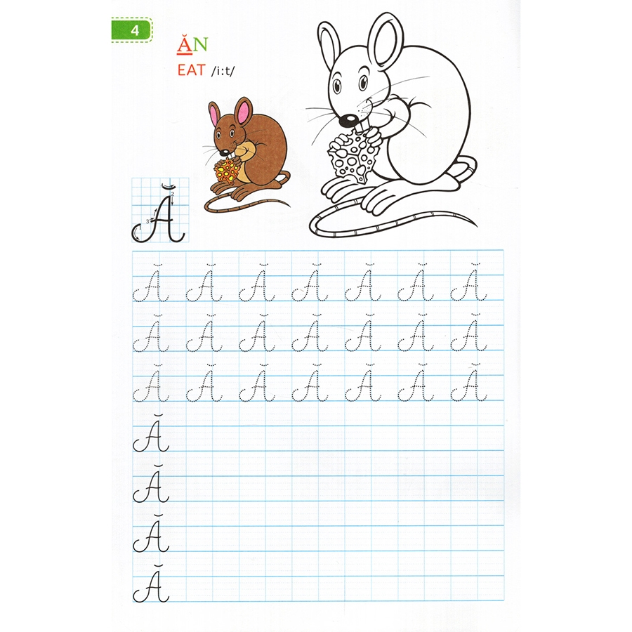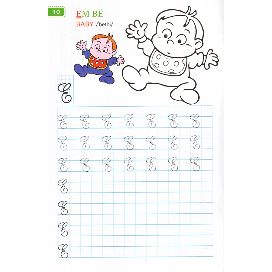 Hy vọng tập sách này sẽ hữu ích cho các bậc phụ huynh trong việc gúp bé lám quen với con chữ, với một sinh ngữ mới, nhanh chóng luyện tập chữ đẹp, đồng thời phát huy hơn nữa tính sáng tạo và tư duy tưởng tượng của mình.
