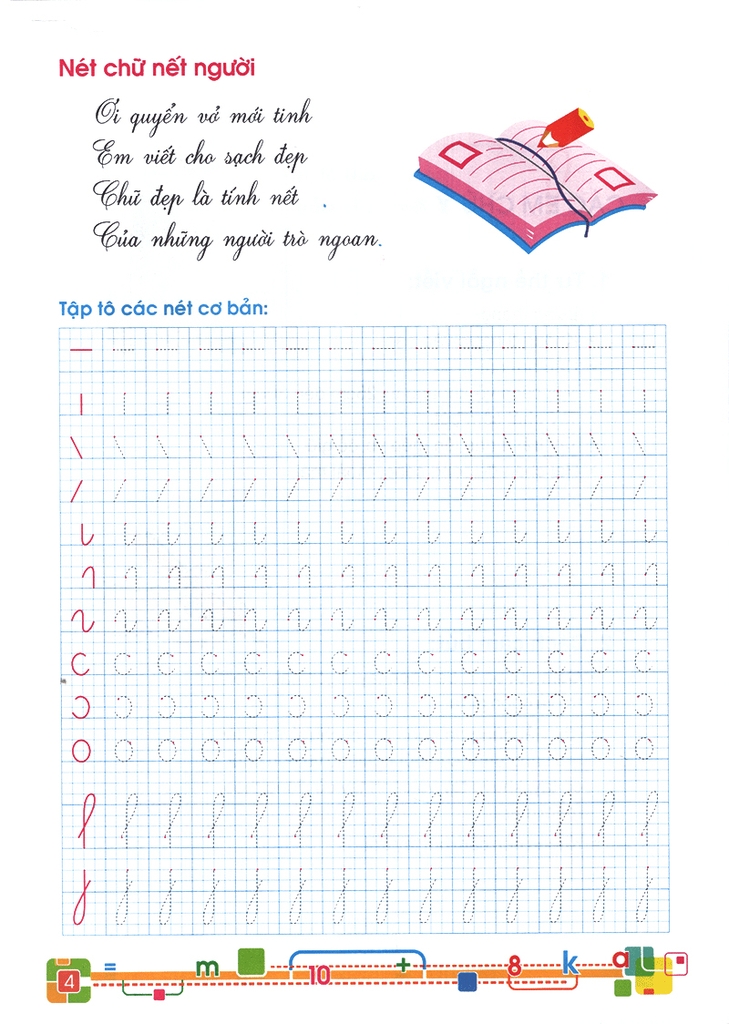 Bộ sách Chuẩn bị cho bé vào lớp 1 sẽ giúp cha mẹ giải tỏa những lo lắng, băn khoăn đó. Nội dung sách gần gũi với chương trình sách giáo khoa chuẩn, bao gồm: giúp bé luyện tay theo các nét cơ bản đầu tiên; như móc, sổ, ngang, sọc, xước, vòng, giúp bé làm quen với bảng chữ cái gồm 29 chữ theo cách viết thường và viết hoa; ngoài ra, bé còn được làm quen với các con số và những phép tính đơn giản v.v…