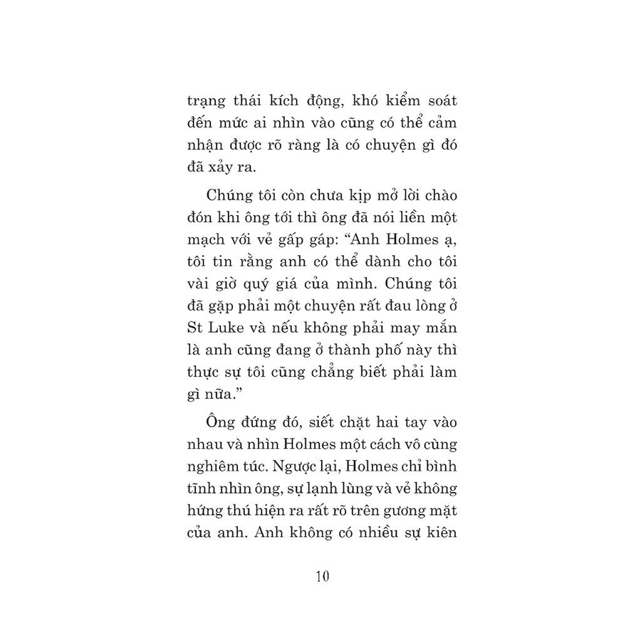Sherlock Holmes tuyển tập của nhà văn Sir Arthur Conan Doyle gồm 10 cuốn sách là 10 mẩu truyện ngắn được chọn lọc kỹ càng, hy vọng sẽ giúp quý độc giả hiểu rằng không phải ngẫu nhiên Sherlock Holmes được biết đến là nhân vật thám tử hư cấu nổi tiếng nhất trong lịch sử văn học, và tác phẩm này không chỉ là tiểu thuyết trinh thám đơn thuần, mà còn là một danh tác kinh điển: