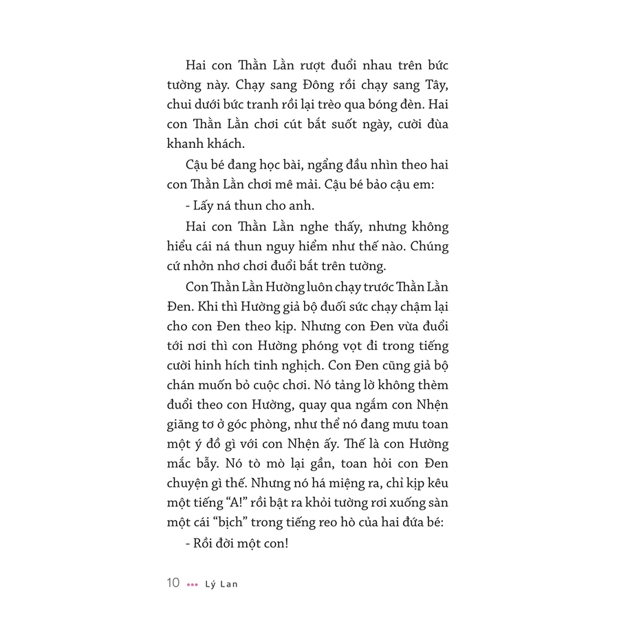 Một đêm, khuya thật là khuya, con Thằn Lằn Đen đang buồn. Nó nhớ bạn là Thằn Lằn Hường quá, nên cứ tặc lưỡi hoài, rồi vô tình rớt xuống trang sách, gặp tôi.