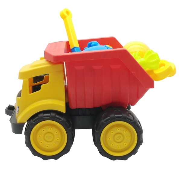 Bộ đồ chơi được Công ty cổ phần đồ chơi An toàn Việt sản xuất từ nhựa nguyên sinh an toàn nhập khẩu có chứng nhận nguồn gốc và chất lượng rõ ràng. Các chi tiết nhựa trong bộ đồ chơi được đội ngũ thiết kế khuôn mẫu chú trọng đến yếu tố an toàn của trẻ, bằng chứng là không có ba via, góc nhọn hay cạnh sắc. SP có đặc điểm nổi bật nhất là chiếc xe tải cỡ lớn. Với khối lượng gần 1000g, chiếc xe có độ bền cao, chắc chắn và chịu được va đập. Thùng xe tải có thể xoay, lật và chở được nhiều đồ vật. Bộ xẻng xúc thiết kế đa dạng, màu sắc phong phú giúp bé nhận diện công dụng chơi và rèn luyện kỹ năng vận động tinh.
