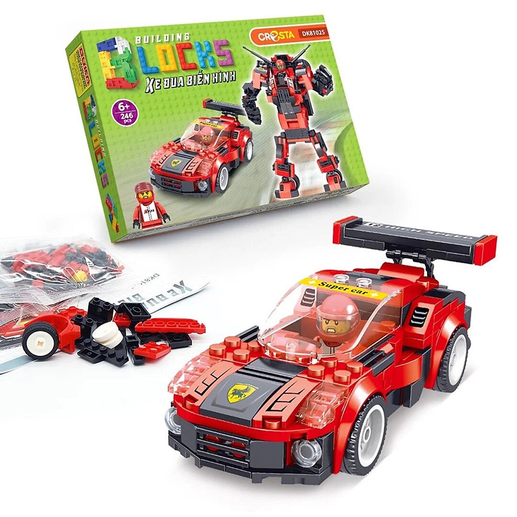 Xe Đua Biến Hình DK81025 246 Mảnh Ghép Ô tô - xe đua luôn là món đồ chơi yêu thích của các bé trai, với món đồ chơi ghép hình này các bé có thể lắp ghép được 1 chiếc xe đua và có thể biến hình thành 1 siêu nhân, người máy. Đồ chơi giúp bé tăng cường tính sáng tạo, rèn luyện tính kiên trì, tỉ mỉ khi lắp ráp và trải nghiệm. Sản phẩm được đóng gói kĩ càng, gọn đẹp trong hộp nguyên đai nguyên kiện, là món quà ý nghĩa dành cho các bé. Sản phẩm được làm từ nguyên liệu an toàn không độc hại với trẻ nhỏ, không dùng pin, dễ lắp ráp, dễ chơi và có độ bền cao. Dùng cho trẻ từ 6 tuổi trở lên